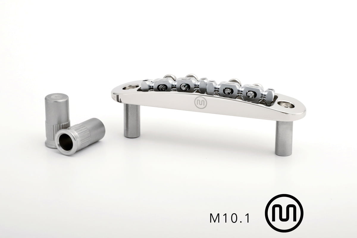 The Mastery Bridge M10.1 is the same bridge as the M10 and includes a set of bespoke 303 stainless steel MTAOM thimbles required for swapping out on AOM (Gibson style adjust-o-matic bridges) equipped guitars.